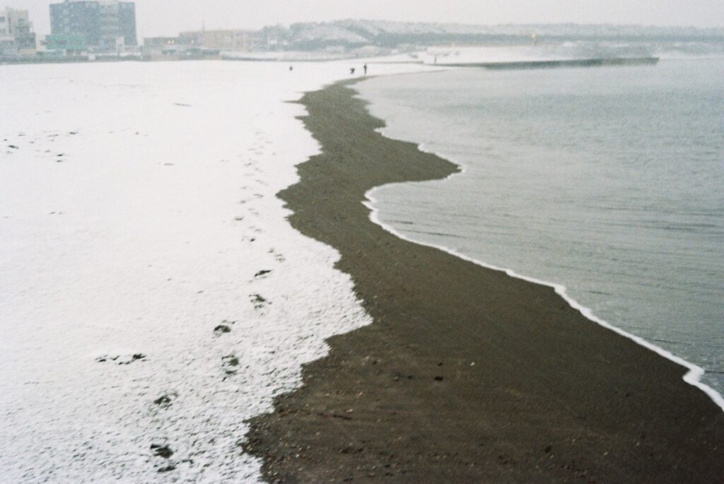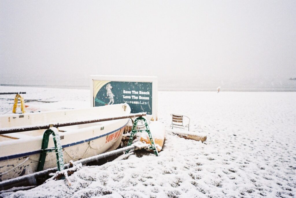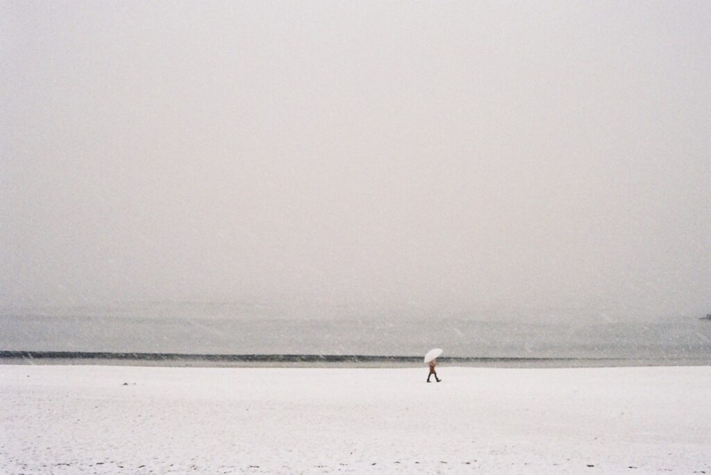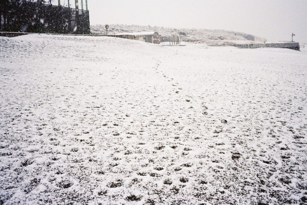 photography 海辺のまちで雪が降った日 2025年1月2日 / 海の近くに住んでいた頃、年始めに雪が降った 南国の風景に降る雪に故郷を思い、なんだかちょっとセンチメンタルな気分になった 浜辺にだんだんと雪が積もる 誰もいない 鳥はいる 誰かいた この日の寒さ、海までの道、匂い、おぼえてる 帰ってきたら、ベランダも寒そうだった カメラ:コンタックスtvs フィルム:不明 kodama世田谷・千歳烏山ギャラリーフィルモ店主。フィルムカメラをはじめとした、ノスタルジックな写真が好きな人たちを集めて、日々何かを企てている。
